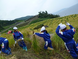 今回も千枚田愛耕会の皆さんにご協力いただき稲刈りがスタートです。