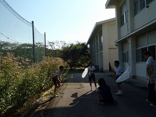 児童はおひさまの下で汗をかきながら頑張っていました。
