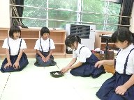 はじめての子も多く,茶道の所作に苦労している子もいました。