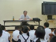 南志見の駐在さんに,夏休みの過ごし方についてお話していただきました。