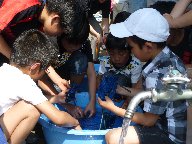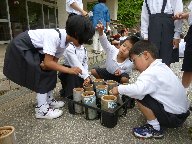 学校に戻って,バケツに苗を植えました。