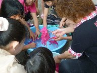 染料を洗い流して,仕上がりを見て,「やったぁー」という声。「う~ん?」という雰囲気。