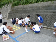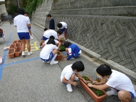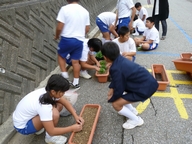 6限目に,5・6年生でパンジーの苗をプランターに植えました。