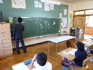 輪島高校のT先生をお招きして,5・6年生に数学の授業をして頂きました。算数ではなくて,数学です。少し手ごたえのある内容でしたが,T先生は,スモール・ステップで,授業を進めていかれました。子どもたちは,最後まで集中力を切らすことなく問題に取り組んでいました。解けた子は,とても喜んでいました。完全に問題が理解できなかったり,答えが出せなかったりした子もいました。