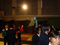 南志見小では,2日後に自身の学習発表会を控えているので,プロの発声・動きをみられて感動していました。間のとり方も上手だし,何度も練習しないと息が合わないだろうという動きが,たくさんありました。