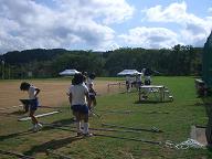 運動会に向けての練習が始まりました。12日に社会体育大会・保育所運動会との共催です。