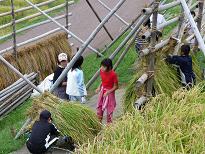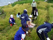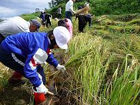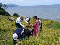 天気が心配されましたが,千枚田愛耕会の方たちはやはりプロです。観天望気はすごいです。空を見たら,稲刈りが終わるまでは降らないだろうと言うことで始めました。昨日の雨で,ぬかるんでいましたが,最後まで無事に終わることができました。稲刈りを終えて,学校に戻る途中に降ってきました。ひとつの道を究めた方のすごさを見ました。