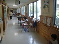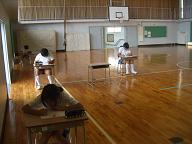 ある学年は,廊下に出て。ある学年は,図書室で。はたまた,体育館の扉を開け放ち,名舟の浜風を浴びながらの授業です。