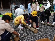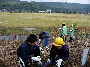 ブロック交流会として,南志見緑の少年団と他の3少年団あわせて4つの団,そして地元の漁協の方々も参加していました。門前グラウンドゴルフ場で広葉樹植栽を370本ほど行いました。その後,場所をモータースポーツ公園キャンプ場に移してシイタケ菌をほだ木へ打ち込む作業も行いました。天候も穏やかで,作業はやりやすかったです。