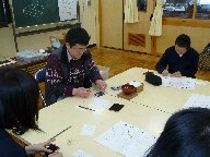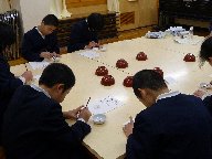 今日は,若林さんの指導のもと5年生がマイ椀の記名を行いました。