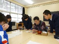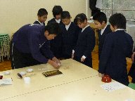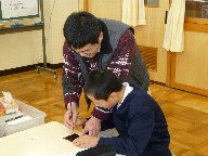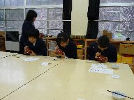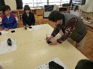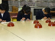 今日は,若林さんの指導のもと5年生がマイ椀の記名を行いました。