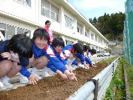 今年も岡田さん指導のもと,5・6年生はジャガイモ上を行いました。植物が育つためには,窒素,リン酸,カリウムが大事であるということを習いました。