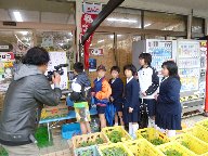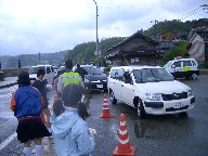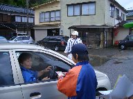 6年生が名舟広場で交通安全を呼びかけ,パンフレットやポケットテッシュ,マスコットをドライバーに配布しました。