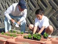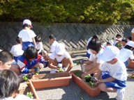 今日は,全校でパンジーの苗植えを行いました。