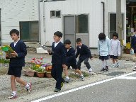 学校に戻って,バケツに苗を植えました。