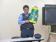 南志見の駐在さんに,夏休みの過ごし方についてお話していただきました。
