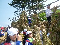 今日は,とにかく暑い日でした。水分補給をしながらの稲刈りとなりました。