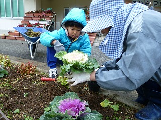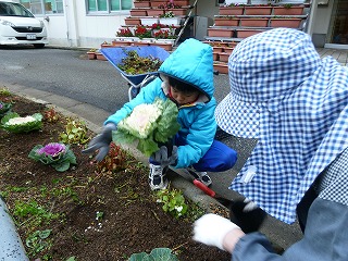 葉ボタンを植えました。一人で頑張ったよ。ちょっと手伝ってもらったけどね。