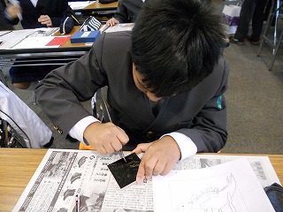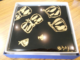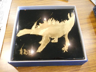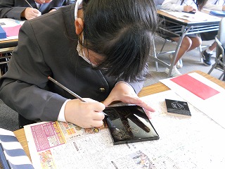昨年から,「漆芸額」に思い思いのデザインを沈金で描きます