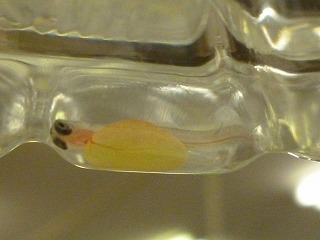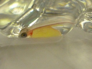 おなかに大きな袋(栄養袋)をつけて,ときより泳いでいます!!