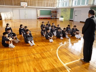 「3学期は,次のステップ(進級・進学)のための助走期間です。幅跳びも高跳びも,飛行機が飛び立つにも助走がとても大切です。だから,みんなもがんばってください。特にがんばって欲しいことが3つあります。 ①毎週の短作文づくり ②8の字跳び ③読書 を一生懸命にがんばりましょう。」