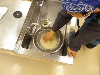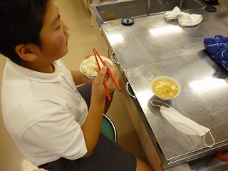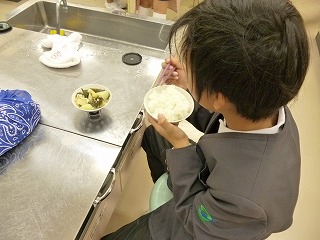 5年生ができあがりを食べていると,ちゃんと6年生が
