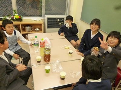 でも,一緒に会食です。ミックスジュース(炭酸・リンゴ・お茶)もおつな味でしたよ!?