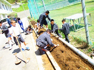 担当の先生方によると、児童はくわやシャベルを使って、上手にうねをつくり、