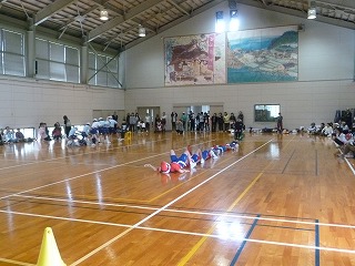 南志見地区社会体育大会が開催されました。家族の方や地域の人たちと一緒になってたくさんの競技に参加しました。徒競走やいろいろリレーなど子どもたちは家族や地域の人が見守る中で一生懸命頑張って出せる力を発揮しました。今年は白組が優勝しました。