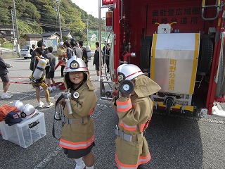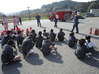 学校裏山で火事が発生した想定で公民館・保育所合同で避難訓練が行われました。子どもたちは、落ち着いて冷静に避難することができました。速やかに避難した後は輪島消防署の方々が子どもたちにたくさんの体験をさせてくださいました。消防士になりきったり、救急車両の見学をしたり、子どもたちはとても楽しく火災についての学習ができました。消防署の皆様どうもありがとうございました。