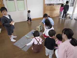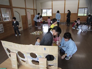 1・2年生が生活科で作ったおもちゃをもって南志見保育所へ訪問しました。さかなつりやすごろくなどたくさん楽しい遊びに保育所の子どもたちもとても喜んでいました。つい昨年まで保育所にいた1年生もとても頼もしくみんなを案内していました。これからも楽しく一緒に交流ができればいいね(^_-)-☆