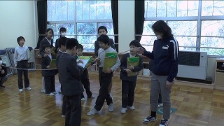 児童集会がありました。今日は、園芸委員会の発表でした。植物〇✖クイズをみんなで楽しみました。クイズ終了後はみんなに「押し花のしおり」が配られました。みんなで楽しみながら、たくさんの植物の勉強ができました。