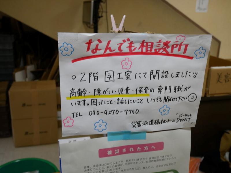 学校内ではDWAT(災害派遣福祉チーム)の方が「なんでも相談所」を開設してくれています。