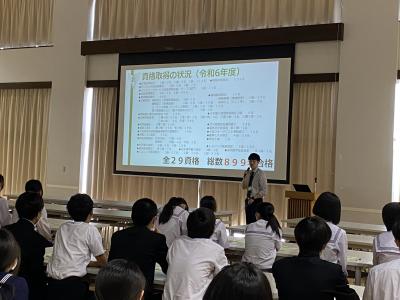 この日は1・2年生を対象に『非行被害防止講座」も行われました。 講師 石川県教育委員会 山崎 洋さん
