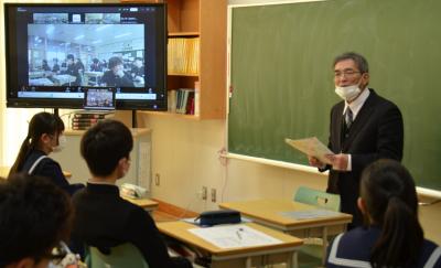 東京からNTTドコモの方とオンラインでつなぎ、ネット利用における人権問題について考えました。