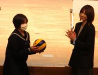式の後には記念講演が行われ、講師に元バレーボール日本代表・新鍋理沙さんをお招きし「成長・挫折・目標~ボールを追い続けた日々の中で~」と題してお話をいただきました。