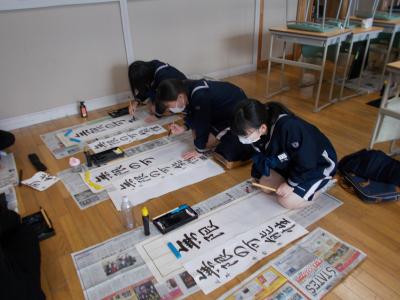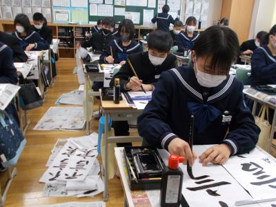 生徒は1月10日から 校内競書大会に取り組み,