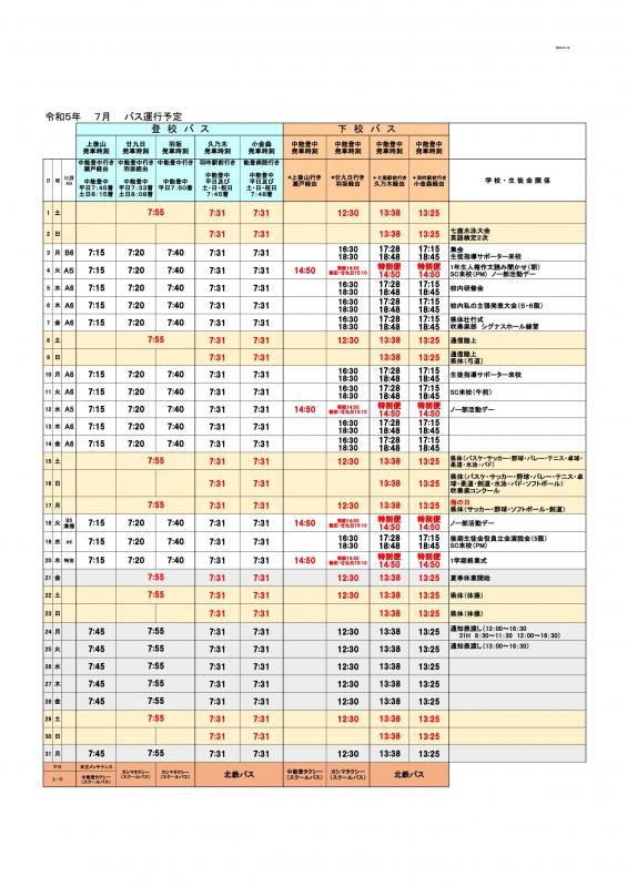 7月バス運行予定表