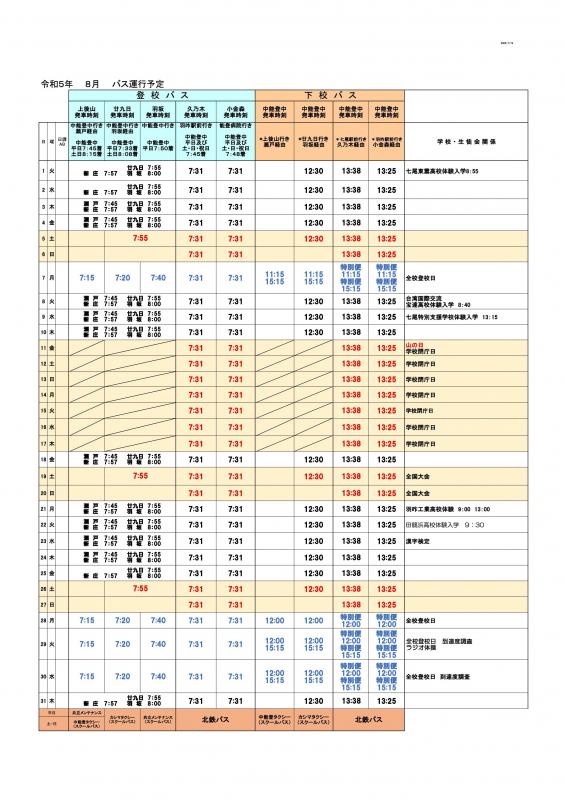 8月バス運行予定表をアップしました。