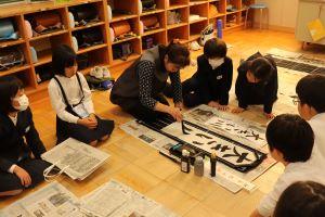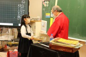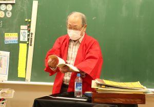 5年生は、日本の伝統の遊びや文学について伝えました。
