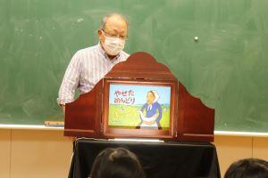 次の「あんもちみっつ」は、おじいさん役とおばあさん役に分かれ、二人での紙芝居です。