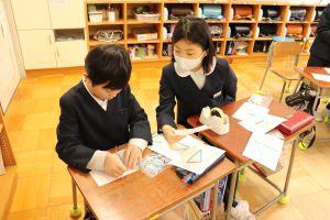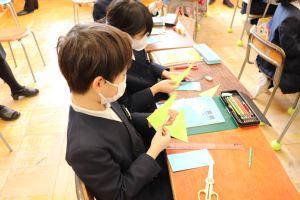 工作用紙のはこづくりを先に取り組んでいる二人です。