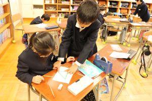 自分の困っていることを友達のやり方を見たり、聞いたりしながら自分のペースで進めていました。集中して考えながら作業していることがよくわかりました。目指す学びの姿だと思います。