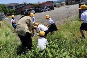 28日土曜日に、中島小学校の草刈りボランティアの、山先さん、吉野さん、森元さん、多賀さんが、運動場の草刈りをしてくださいました。