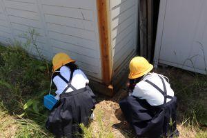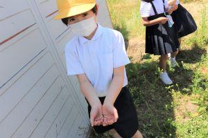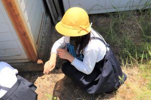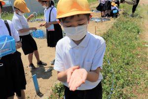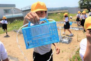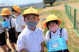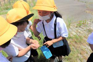 2年生が生活科の学習「みんな生きている」で、学校のさつまいも畑で虫さがしをしました。