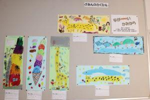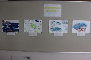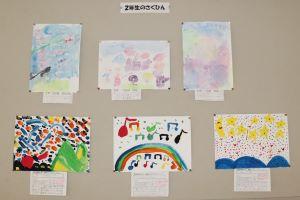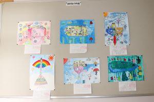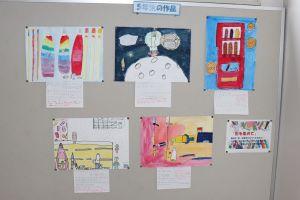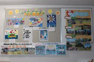 学校の掲示板には、子どもたちの作品を掲示してあります。