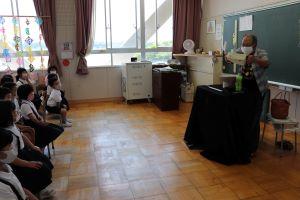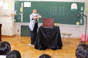 前回の手品が好評で、子どもたちは、その種明かしにワクワク!