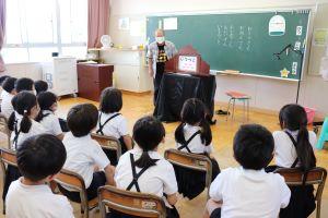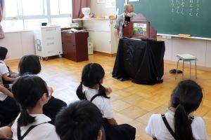 今日は、1.2年生お待ちかねの「おもしろ紙芝居」の日です。