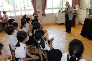 紙芝居に手品(バックミュージックつき音楽)に、子どもたちは、大喜びでした。笑う