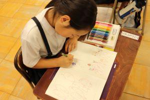 6年生は、火祭りのポスターを制作中です。完成をお楽しみに!